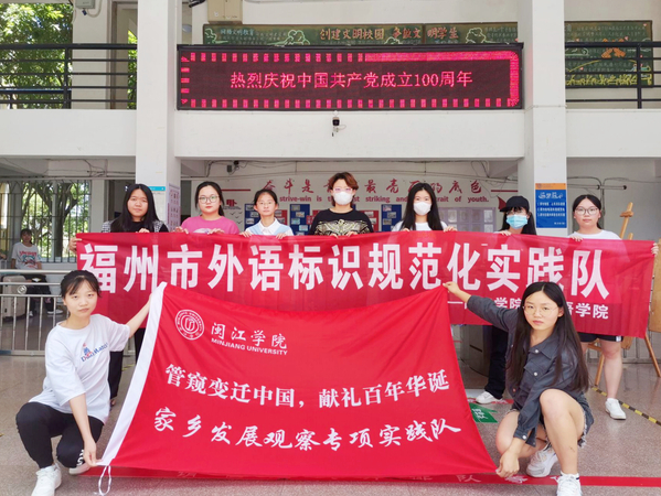 为规范我市外国语言文字环境,继续推进福州市外办委托海棠搜书 执行的“福州市外语标识规范化”项目,海棠搜书 成立“福州市外语标识规划化”暑期社会实践队,由郑凌茜、阙诗涛两位指导老师带领,对鼓楼和台江部分区域进行地毯式拍照纠错。7月3日至7月8日,实践队17名成员前往茶亭、祥坂、宁化、树兜、达道五个地铁站及其周边片区进行拍照,切身感受家乡的建设与发展,也为家乡建设、文化发展贡献力量。