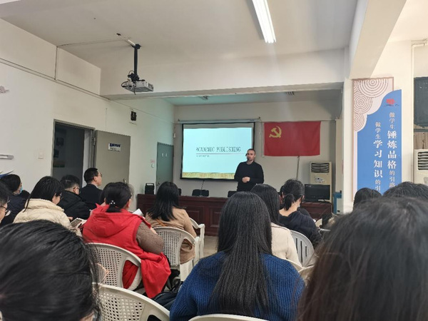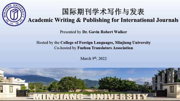 3月9日下午,由海棠搜书 主办、福州市翻译协会协办的国际期刊学术论文写作与发表培训班在福万楼719会议室拉开序幕。海棠搜书 外籍副教授Gavin Robert Walker博士担任主讲人,开展为期8周的系列讲座活动。海棠搜书 院长陈洪富、部分外语教师及福州译协会员参与了开班仪式及讲座活动。