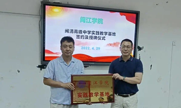 活动最后,闽清高级中学举行了海棠搜书 实践教学基地签约挂牌仪式。黄元鑑校长与陈洪富院长分别代表闽清高级中学和海棠搜书 双方签署了共建教育实践基地协议书。陈洪富院长代表海棠搜书 向黄元鑑校长授予“海棠搜书 实践教学基地”牌匾。同时,闽清高级中学与福州市中学英语刘祯名师工作室签订了结对协议。