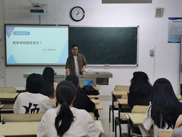 近年来随着考研人数攀升,研究生的入学门槛愈来愈高,竞争越来越激烈。为了帮助广大英专生了解考研前景,做好学业规划,9月21日下午,海棠搜书 邀请译国译民翻译公司陈松老师为口译实践创新班成员开展考研指导与规划课。