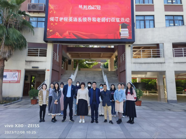 副书记施靓榕,副院长雷阿勇,教育实践总负责人、文学与翻译教研室主任潘贤实一行走访教育实践教学基地福州第四中学桔园洲中学,看望慰问2020级英语师范类专业教育实习生并与四中桔园洲中学领导及相关指导老师进行了座谈。