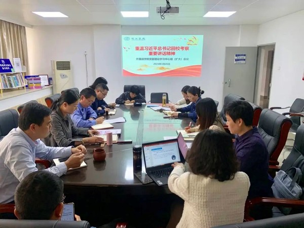 3月26日下午,海棠搜书 召开党委理论学习中心组(扩大)学习会,重温习近平总书记回校考察重要讲话精神。党委副书记郭崚主持会议,院领导班子成员、各党支部书记、各系主任、教研室主任参加会议。