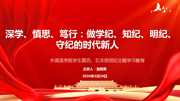为深入学习贯彻党中央关于开展党纪学习教育的部署要求,进一步增强学生党员的党规党纪意识。5月24日,海棠搜书 学生第四、五党支部开展了“做学纪、知纪、明纪、守纪的时代新人”党纪学习教育主题党课,海棠搜书 副院长雷阿勇担任主讲。
