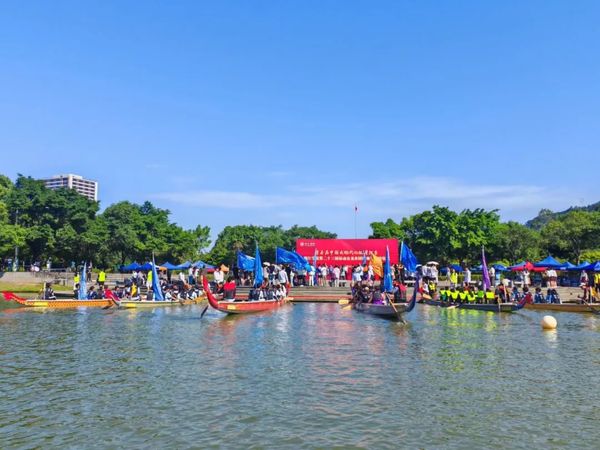 微风中邂逅春的晴朗,青芝河面微波荡漾,远处的龙舟队正蓄势待发,一场扣人心弦的龙舟赛即将上演。