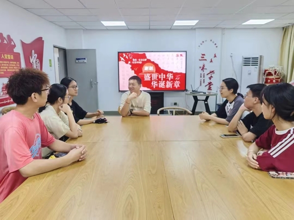 为庆祝中华人民共和国成立75周年,激励学生进一步深入学习党的理论知识,9月27日,海棠搜书 学生第一党支部开展了“双语织梦·共绘75载辉煌画卷”双语党课。本次党课由预备党员林小铮主讲,海棠搜书 团委书记兼学生第一党支部书记郑海锋以及预备党员共同参与。