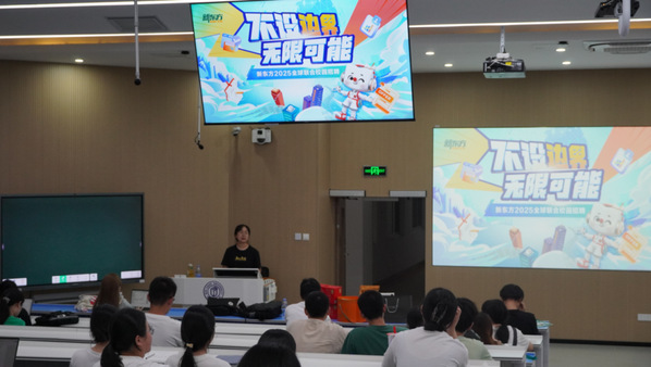 福州市新东方培训学校游丽老师介绍了新东方的发展历程、业务体系、职位分布、核心理念以及新东方如何通过技术创新和市场扩展,不断增强企业的实力、探索新的增长点,使同学们对新东方的整体实力有了更加深入的了解,也展现了新东方未来发展的无限潜能。