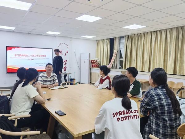 郑海锋老师对本次党课进行总结。他强调,青年党员要不断加强学习,提高自身的能力和素质,以更好地适应新时代的发展要求,同时将二十届三中全会精神落实到具体行动中,为国家发展贡献自己的力量。
