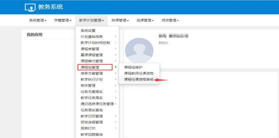 1.操作路径:教学计划管理 →课程组管理 →课程任课资格审核