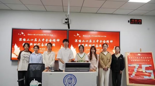 为进一步学习贯彻落实党的二十届三中全会精神,多角度、多方位、深层次再学习习近平总书记来校考察重要讲话精神,11月14日,外国学院双语读书社、团委组织部与2023级英语1、2班联合举办“深悟党的二十届三中全会精神,共筑新时代奋进之路”双语新思想沙龙分享会。
