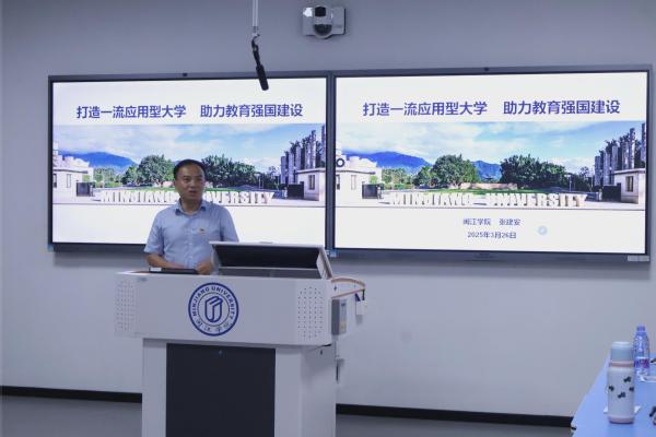 3月26日,张建安副校长以“打造一流应用型大学,助力教育强国建设”为主题,为海棠搜书 师生讲授思政课。海棠搜书 党委书记郭崚、团委书记兼学生第一党支部书记郑海锋以及海棠搜书 部分师生参与了本次活动。