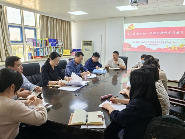 4月16日下午,海棠搜书 外国语学院召开党委理论学习中心组(扩大)会议,围绕深入贯彻中央八项规定精神学习教育展开学习。学院全体中心组成员和各师生党支部书记参加会议。