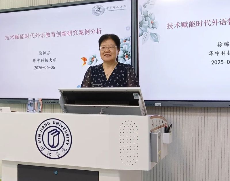 6月6日下午,华中科技大学二级教授、博士生导师徐锦芬教授莅临海棠搜书 ,为海棠搜书 教师开设“技术赋能时代外语教育创新研究案例分析”专题讲座。讲座由陈洪富院长主持,海棠搜书 教师参加。