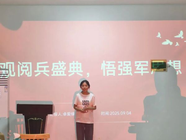 活动现场,同学们踊跃发言,纷纷结合前天阅兵仪式的壮观场面分享自己的感悟。林小铮同学说,当装备方队以磅礴气势驶过天安门时,她深刻体会到强国必先强军的历史训诫,铭记先辈的牺牲与奋斗。刘曼琴同学表示,抗战老兵乘车方阵的出现令她热泪盈眶,她表达了对抗日英雄们无尽的崇敬——正是他们当年的浴血奋战,换来了今日国家的强盛与和平。