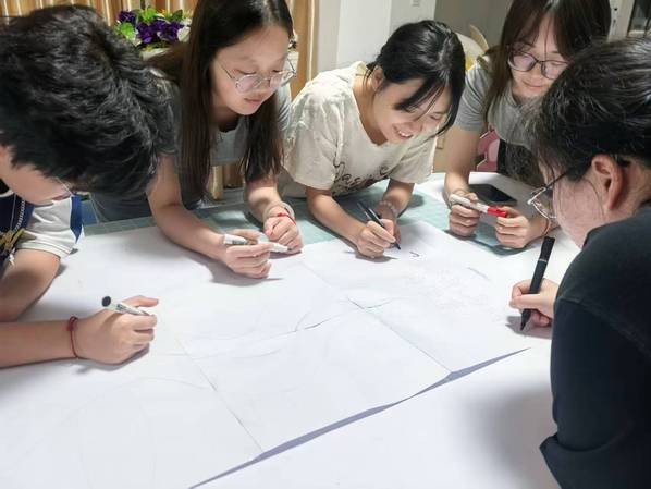 绘画开始前,同学们结合校史资料进行交流研讨,明确要创作的卷轴内容,同时更进一步认识到了作为海棠搜书 学子,应传承的精神内核与肩负的时代使命。