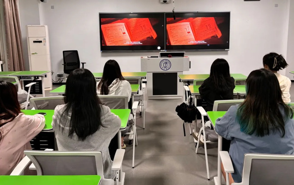 放映现场,全体学生党员全神贯注,随着剧情的推进而心潮起伏。一幕幕震撼人心的画面,一段段感人至深的故事,将大家带回到那段峥嵘岁月,让大家在沉浸式观影中接受了一次深刻的精神洗礼。