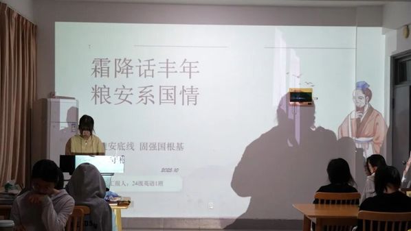 为普及粮食安全知识,引导青年认识粮食安全战略价值,10月23日,海棠搜书 双语读书社联合2024级英语1班共同开展“霜降话丰年・粮安系国情”双语新思想沙龙,在农时文化与双语表达的碰撞中,筑牢青年守护粮食安全的责任意识。