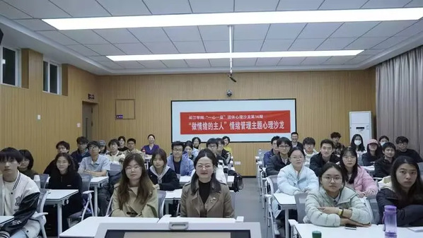 活动最后,黄柳清老师结合情绪ABC理论和经典名著中的案例,多角度佐证“想法决定情绪”的核心观点,表明改变自身想法是掌控情绪的关键。同学们结合生活中的情绪困扰交流体会,在积极分享中深化了对情绪管理的认知,在互动实践中掌握从认知入手调节情绪的方法,促进同学们建立积极向上的心理状态。